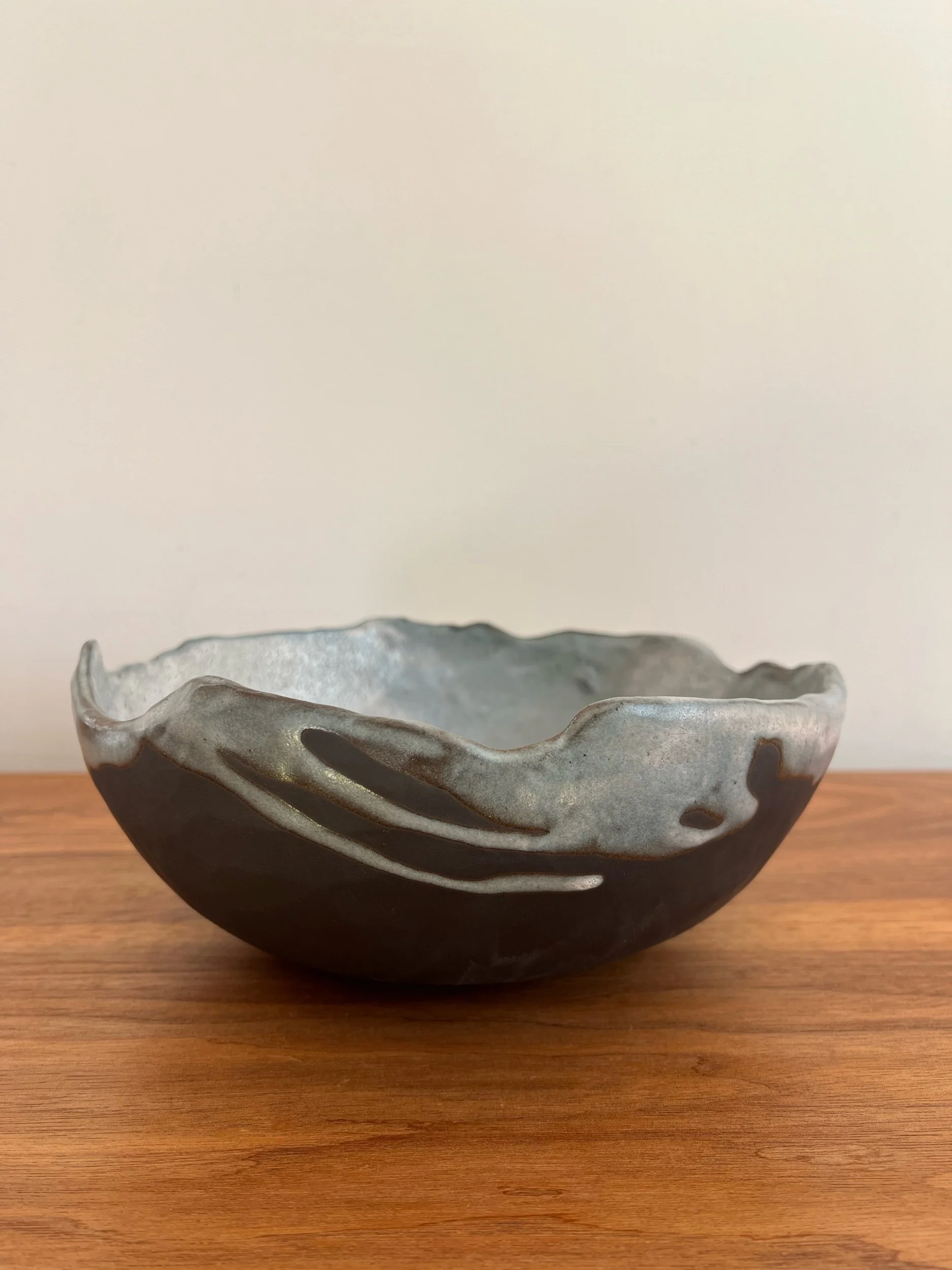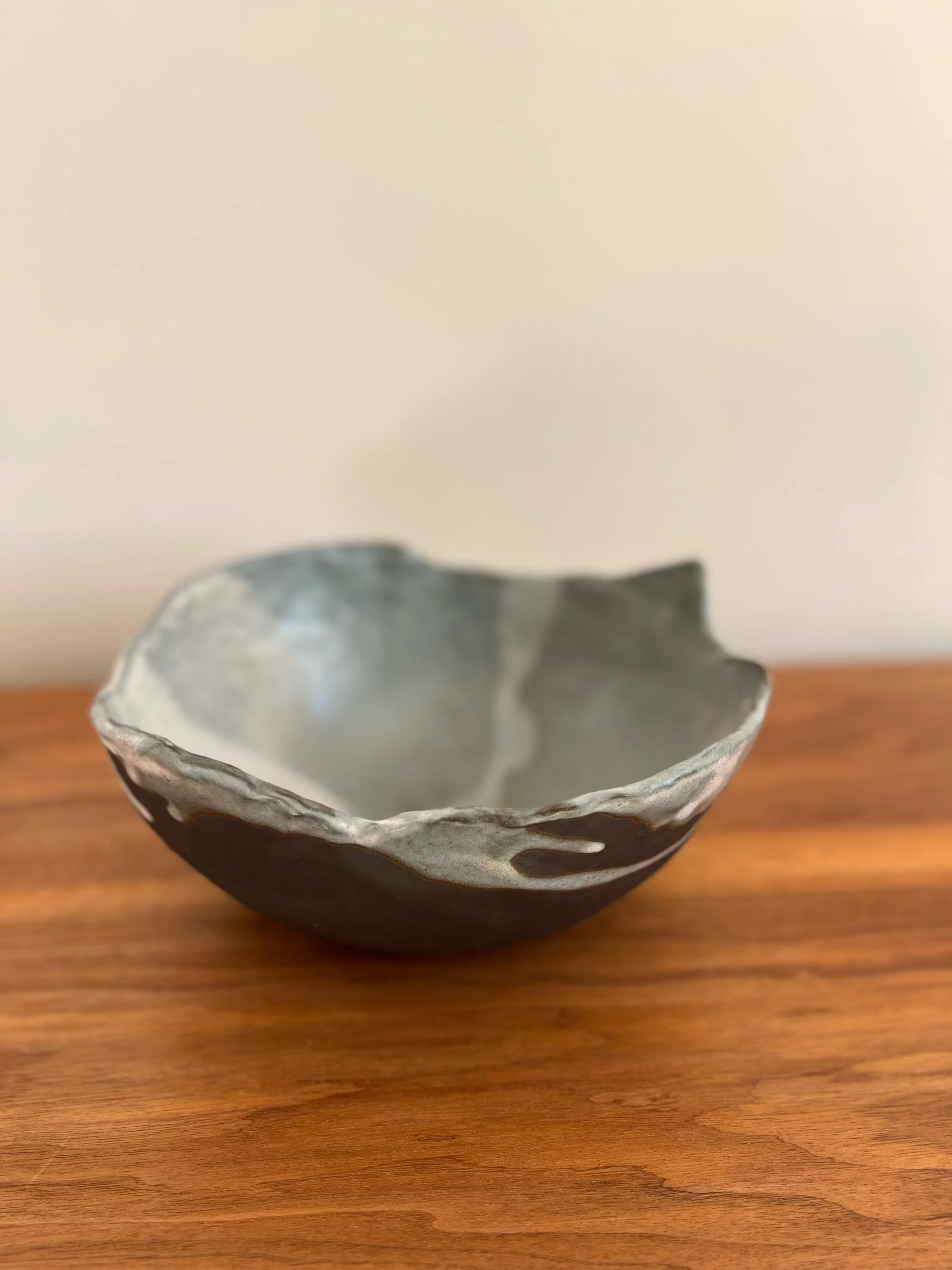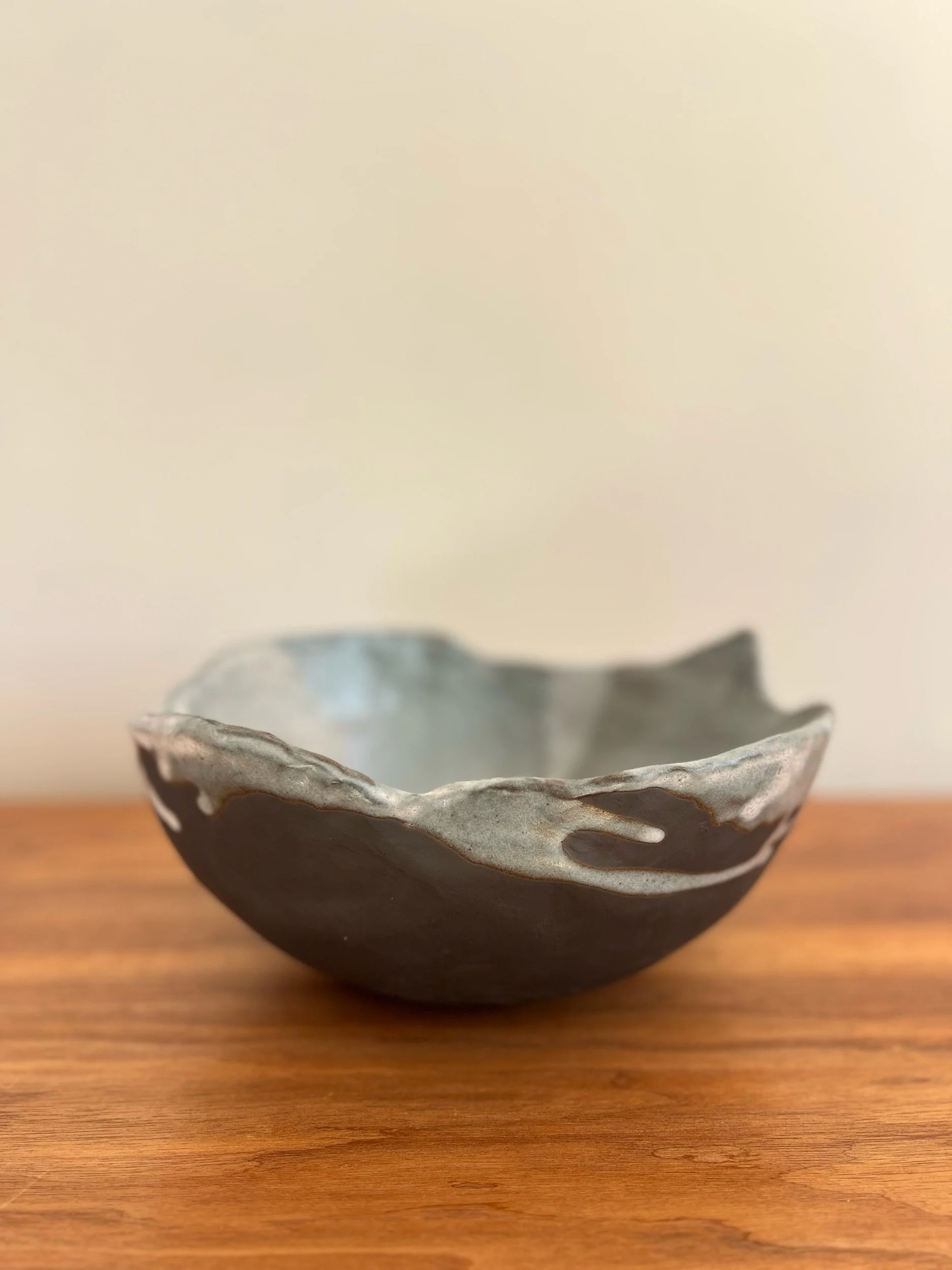 Crafted from high-fire stoneware, these bowls are designed to be completely food safe. I use a rich, matte black and brown stoneware clay that provides a striking base. This is dramatically contrasted by the ‘lava rim’ glaze - a light applied satin white that pools and breaks over the uneven edge, creating a molten, natural flow effect unique to every bowl.